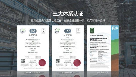 TEPE 緹派衛浴全力打造高水平智造基地,深入實施智能制造賦能企業高質量發展戰略,以打造“智慧工廠推動全衛空間智能定制”為目標,在全國設立四大智造基地,總占地面積近25萬㎡。企業嚴格實行精細化流程管理,并通過ISO、FSC三大體系認證,向國際標準看齊,實現高品質生產,高效率交付。